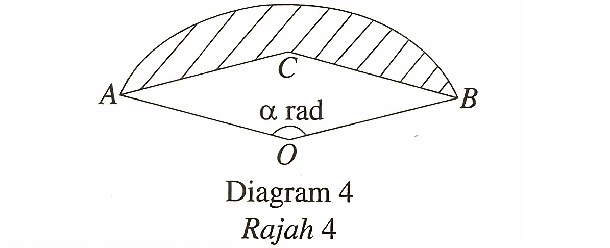 Diagram 4 shows a rhombus OACB inscribed in sector AOB with centre O and radius r cm.